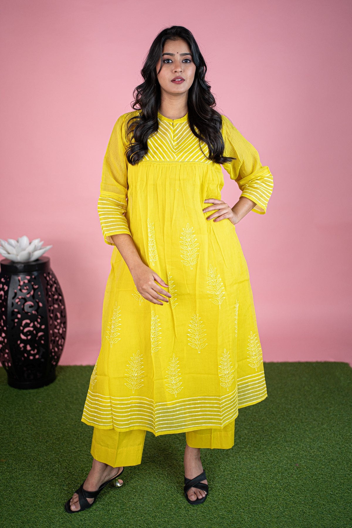 Bright, breathable, and unapologetically cheerful. This yellow solid cotton kurta is crafted from soft, airy cotton that keeps you comfortable all day. The clean solid tone lets the color shine without looking loud, striking a balance between freshness and everyday wearability. Perfect for daytime outings, casual festivities, and warm-weather celebrations.